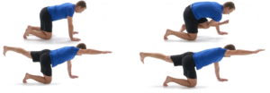 Revenez à la position initiale et recommencez avec l’autre bras et la jambe opposée.